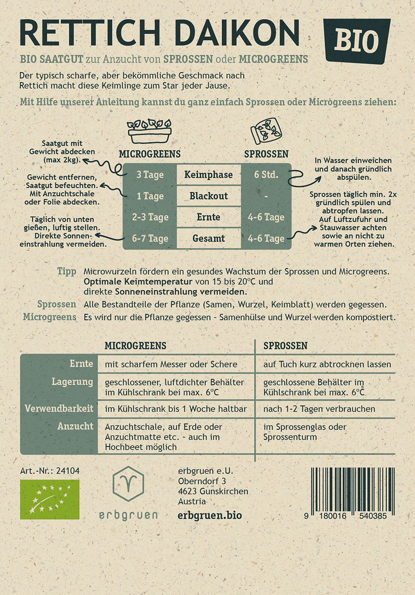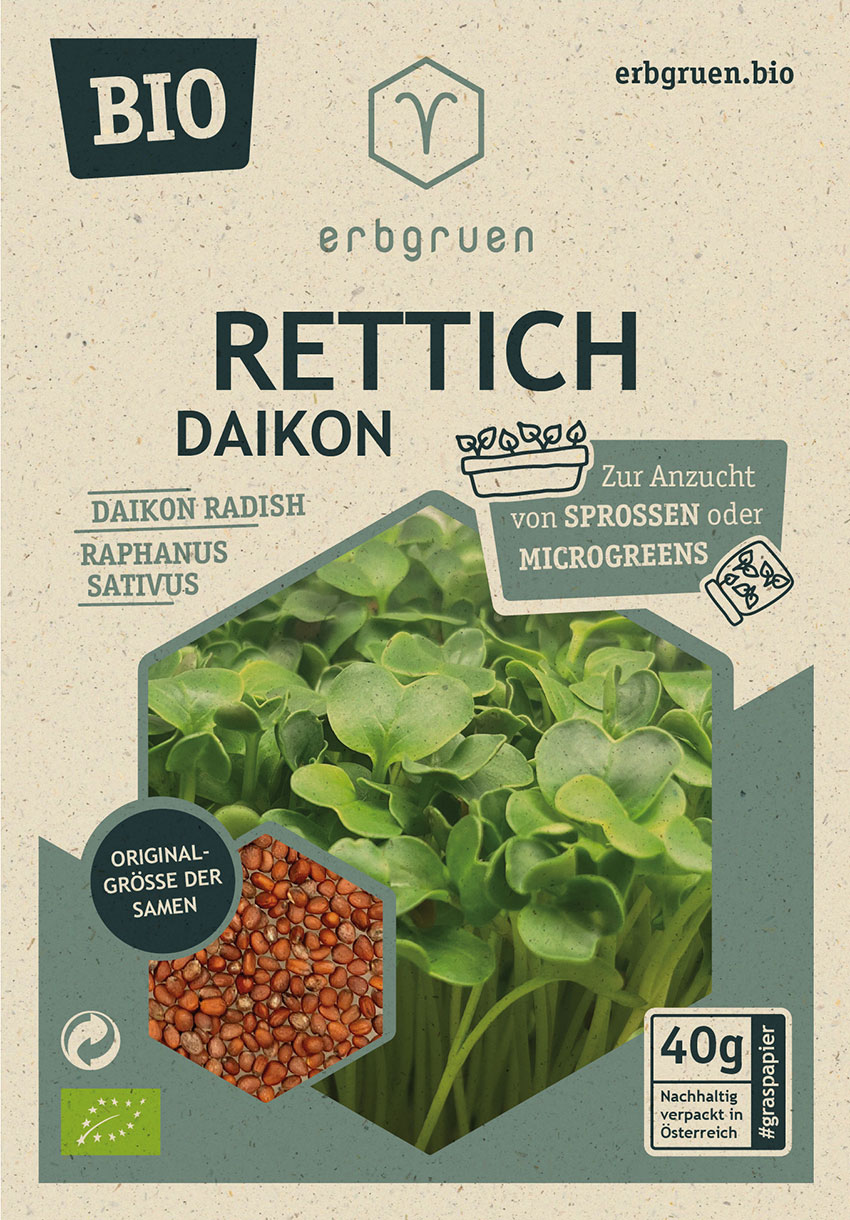 Bringen Sie mit unseren Rettich Daikon Bio-Samen frische Aromen und Nährstoffe in Ihre Küche und genießen Sie die Vorteile der selbst gezogenen Microgreens oder Sprossen!